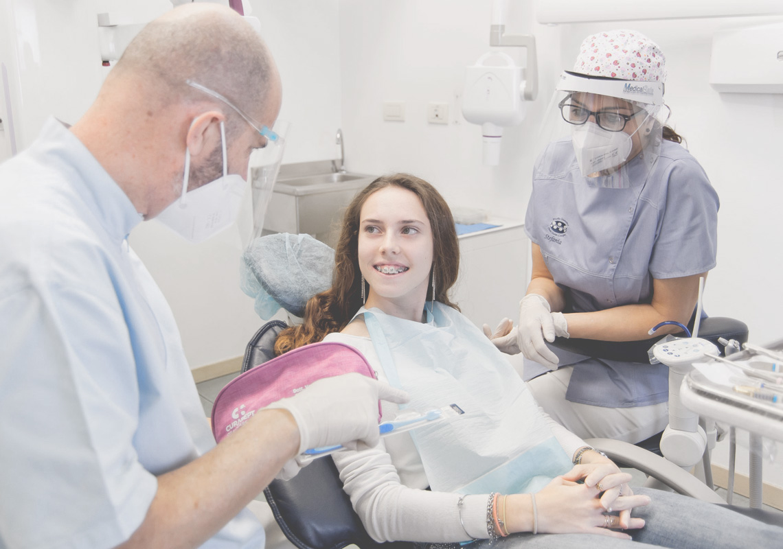 L'età adolescenziale (13-16 anni) è la fase in cui si opera la correzione della posizione dentale mediante terapia fissa o mobile, ovunque possibile con strumenti invisibili come gli allineatori trasparenti o i dispositivi palatini.